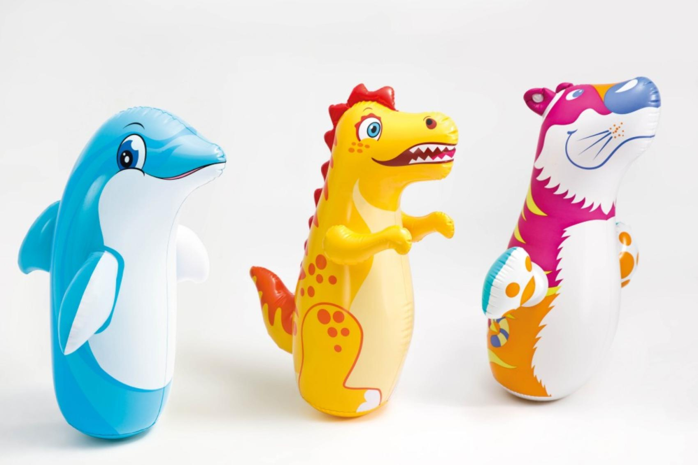 Nafukovací boxovací pytel ve tvaru zvířátka. Hračka obsahuje bezpečnostní ventil a je vyrobena z pevného a předem otestovaného vinylu. V pytli je vestavěná komůrka s pískem, která zajišťuje stabilitu. Určeno pro hraní venku i doma. Rozměr 97 x 61 cm. Vhodné pro děti od 3 let.