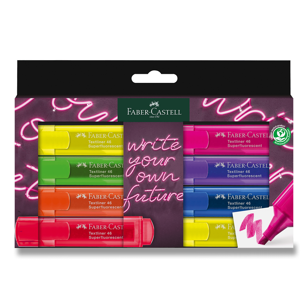 Plochý zvýrazňovač v osmi netradičních neonových odstínech. Tělo a uzávěr s klipem v barvě inkoustu. ideální na všechny druhy papíru inkoust na vodní bázi super fluorescenční barvy seříznutý hrot šíře stopy 1mm, 2mm nebo 5mm vhodné i pro handlettering či bulleting Zakupte produkt Zvýrazňovač Faber-Castell Textliner - sada Neon, 8 barev z kategorie Psací potřeby | Zvýrazňovače | Sady od výrobce Faber-Castell za cenu 155 Kč.
