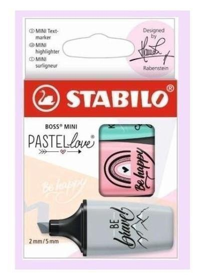 STABILO BOSS MINI Pastellove je nová verze známých zvýrazňovačů BOSS MINI. Známá kvalita velkého STABILO BOSS v šikovném mini formátu. Podtrhněte a zvýrazněte díky špičce sekáče se dvěma šířkami psaní: 2 a 5 mm.